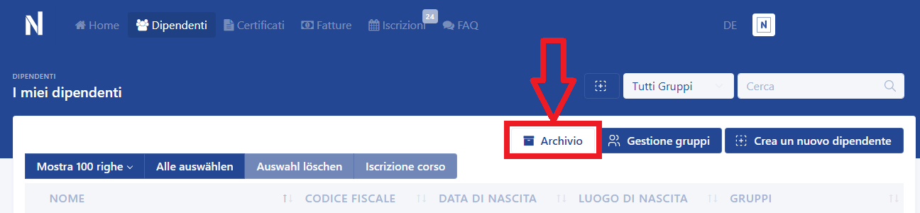 - Seleziona il dipendente da archiviare